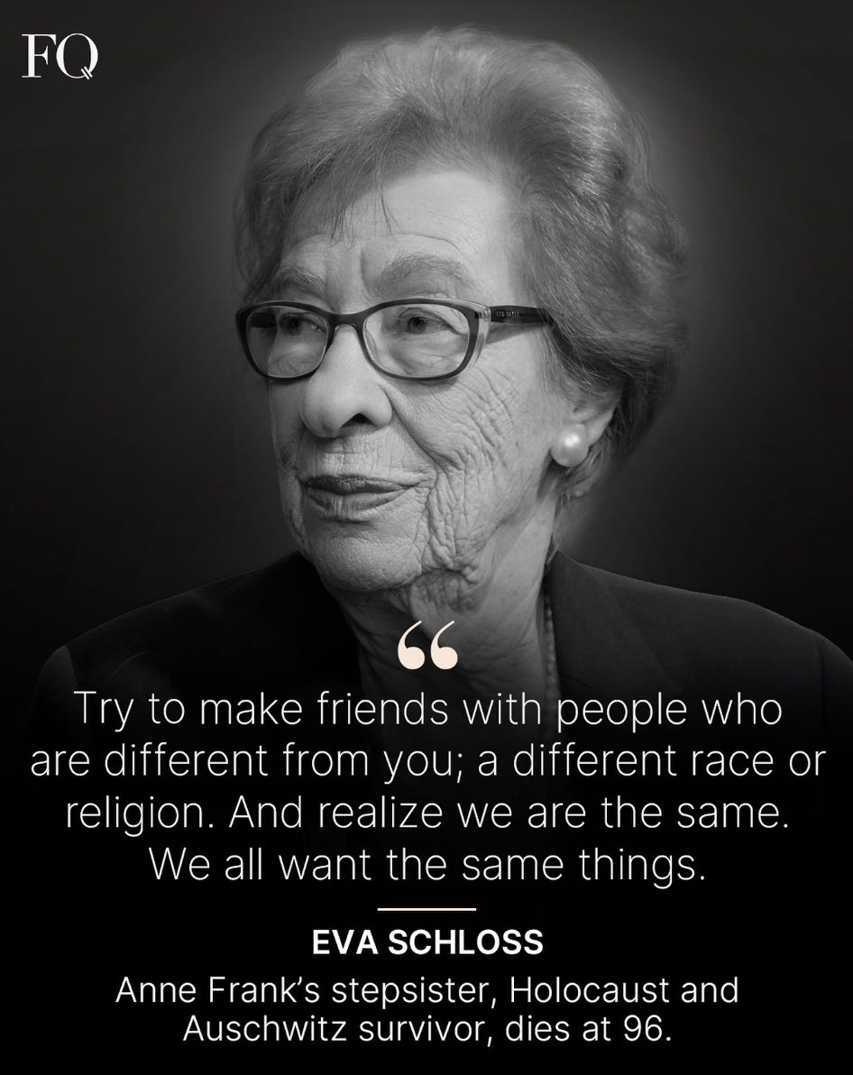 Holocaust survivor Eva Schloss, the stepsister of Anne Frank, dies at 96 - The Associated Press via NPR.