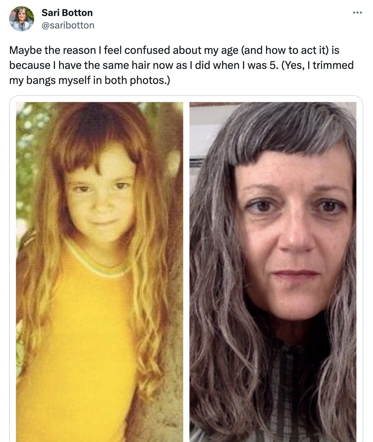 How old are you? When did you start to go gray? Did you ever cover your gray with hair color? Did you stop at some point? Are you determined to continue to color your hair? Are you doing some cool other thing that that’s a mix of coloring/not coloring? Tell me anything you want to about your experience with gray hair.