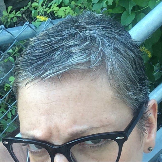 Please let me also point you to Joy Castro’s excellent Oldster essay, “Burning it Down,” from two summers ago in which she wrote about her choice to go “silver.” (Joy’s essay received notable mention in The Best American Essays 2023, edited by Vivian Gornick.)