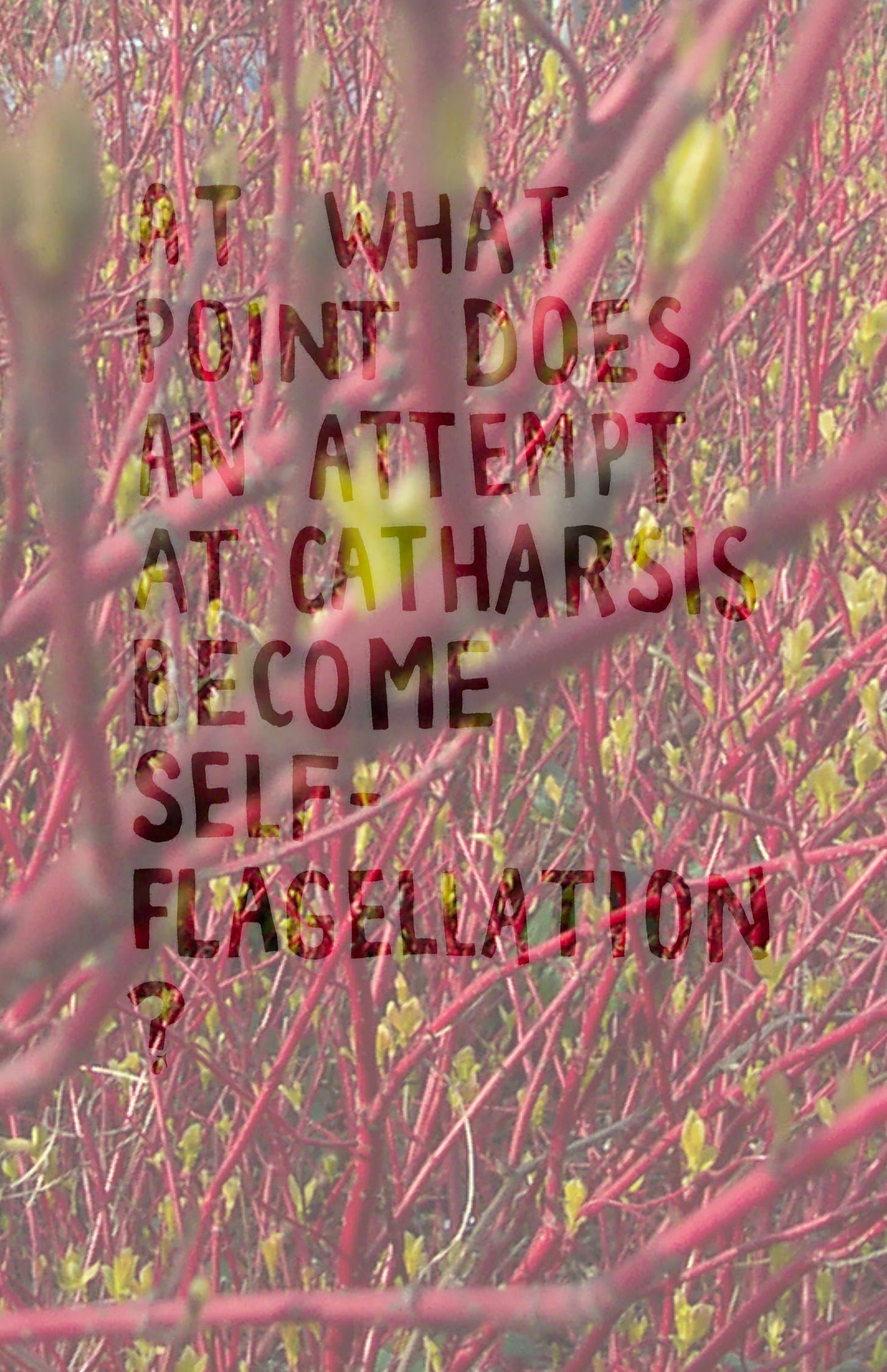 At what point does an attempt at catharsis become self-flagellation?