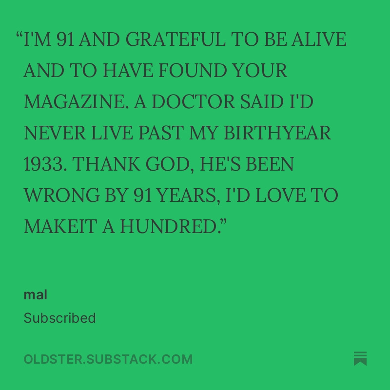 Thanks, as always, to all of you, for reading and thoughtfully commenting, and for supporting Oldster. 🙏 Have a great weekend, everyone.