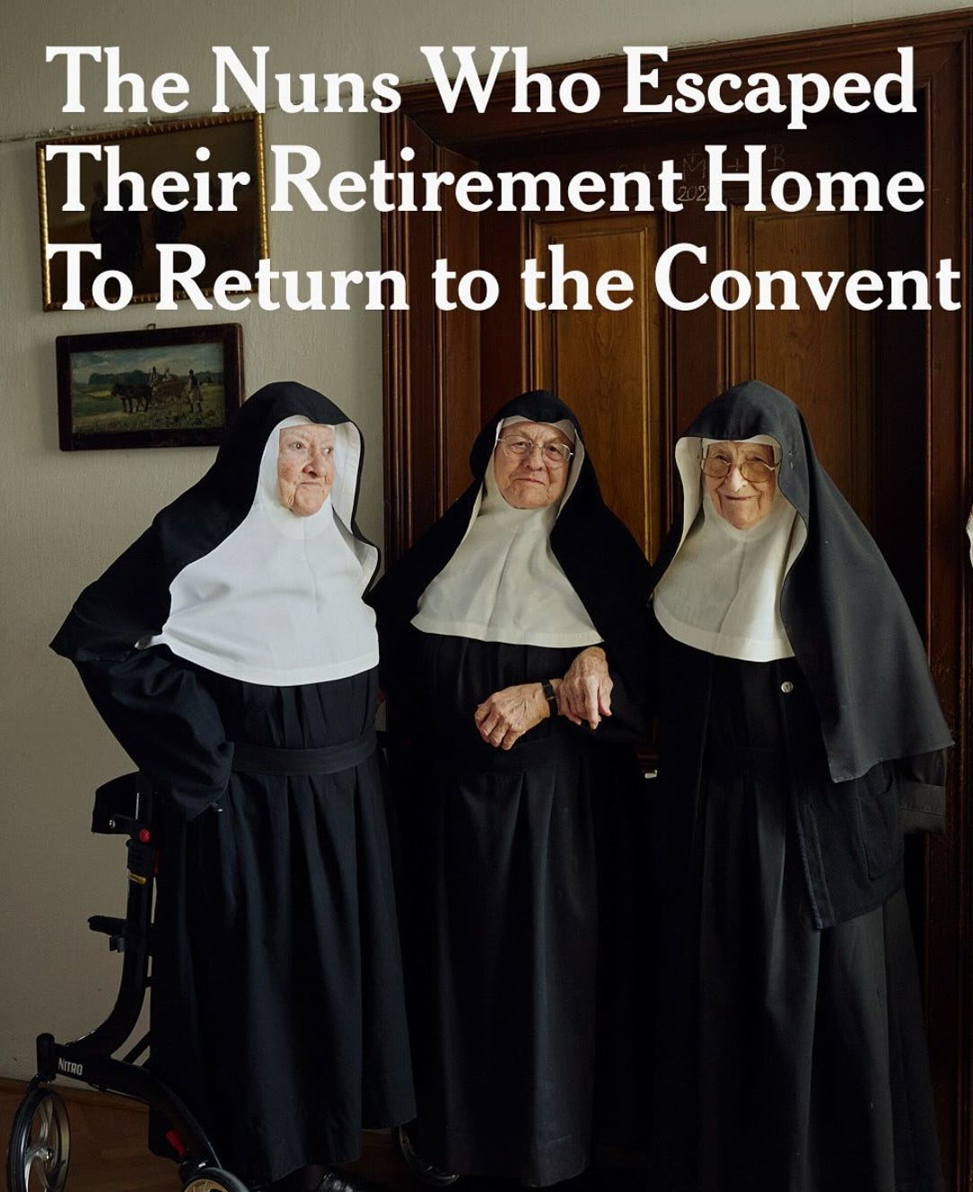 The Plot to Free the Nuns: The last of their order, they are now known for a dispute with the church they gave their lives to over where to live in retirement. And they wanted to stay home. - Christopher F. Schuetze and Jim Tankersley in The New York Times. I can only imagine the bidding war for the movie rights to this incredible story.