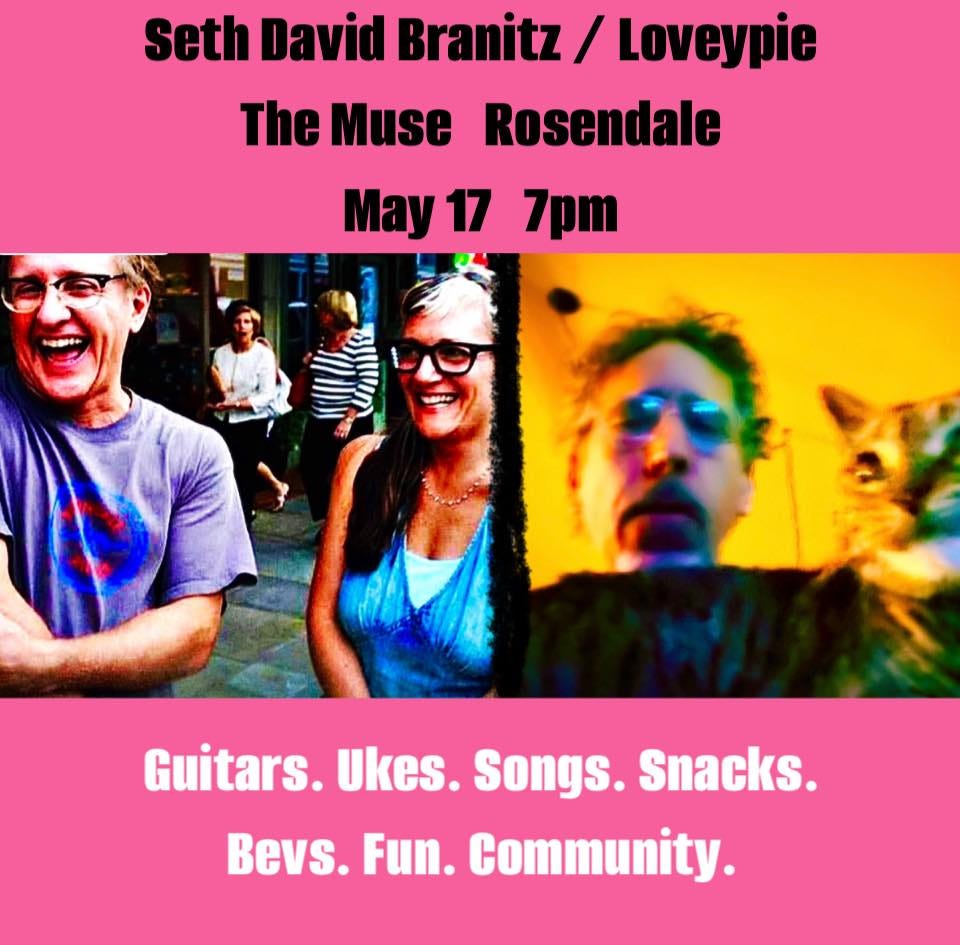 Flipping through this has been an antidote to existential dread. Order the book… Upstate people: This Saturday evening, 5/17 at 7pm, Brian Macaluso and I are opening for Seth Branitz at The Muse in Rosendale. First we’ll perform a few covers together (as “Loveypie”), but this is the big news: For the first time ever, Brian will then play the four songs from his first solo EP, Independence Day. Then Seth will play. It’s pay-what-you-can, with a suggested donation of $20, but no one will be turned away for paying less. Come out if you can…