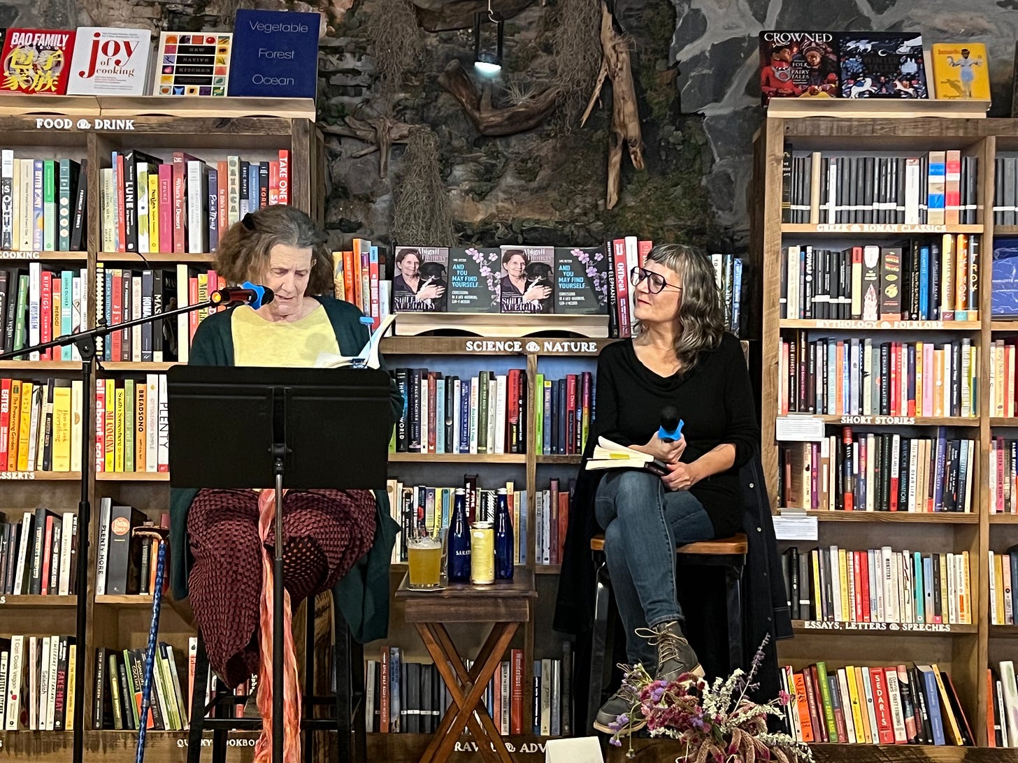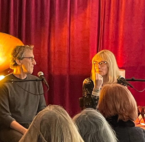 But I’m trying to be less self-conscious about it, especially given how helpful a remedy I’ve found singing to be, particularly these days. Which is why, when master memoirist Abigail Thomas (one of my idols) asked me to sing during our talk and reading at Rough Draft Bar & Books in Kingston last Sunday, I did it. We were talking about our writing processes and the additional creative pursuits that support them. (Thomas is a former painter who now works with clay; as I mentioned above, I make crayon drawings and, well, yeah, I sing.)
