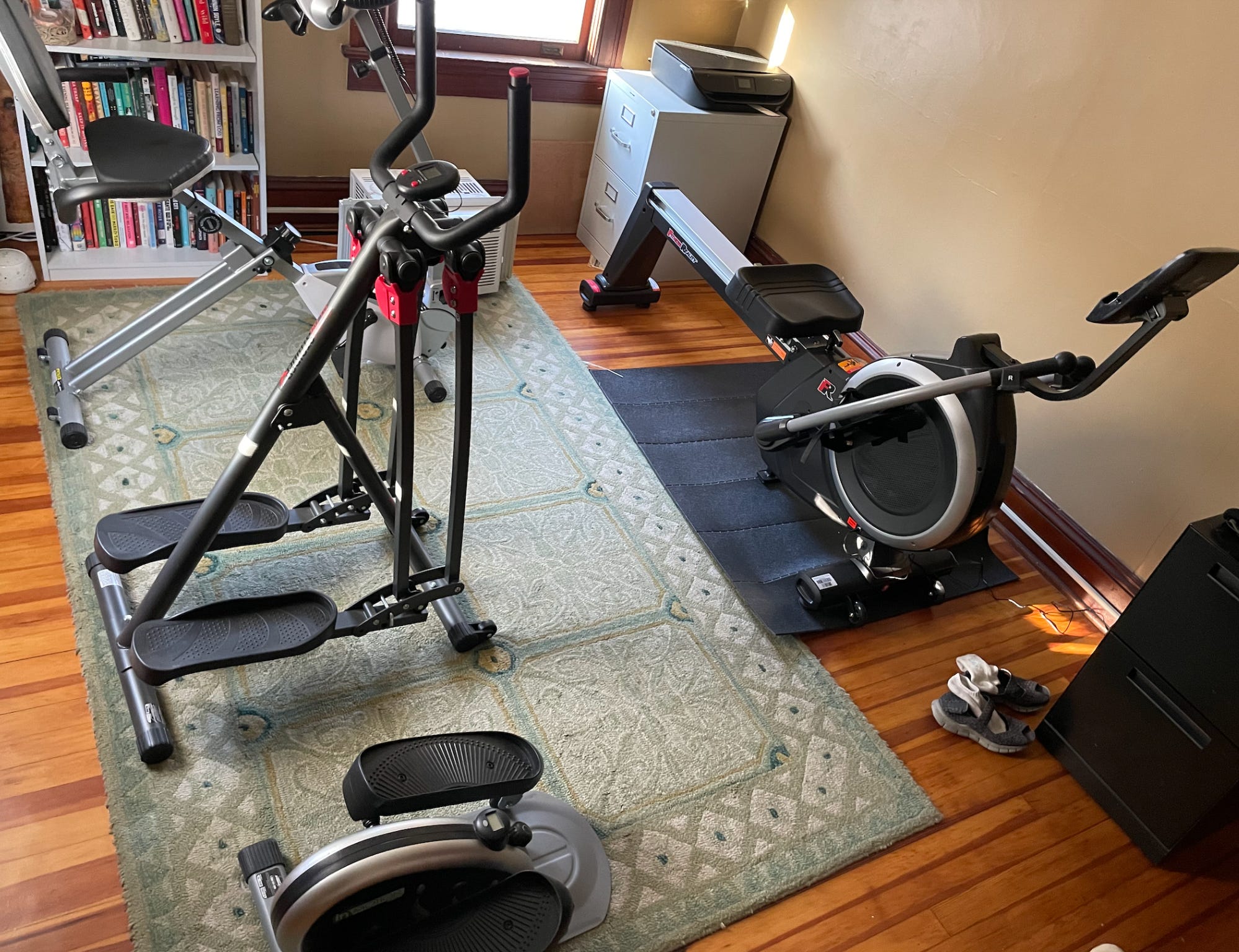 Moving my body. I’m taking lots of walks, even shopping for groceries that way, and occasionally attending yoga classes. I plan to get back to using the cardio equipment in one of our guest rooms asap.