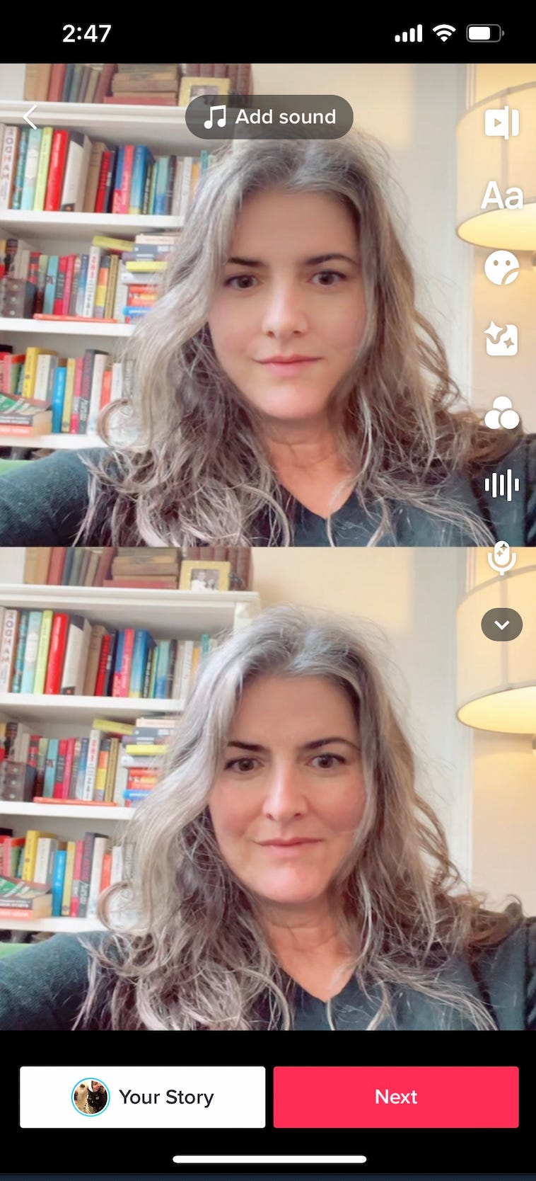 I didn’t feel disappointed though. I looked back and forth between the TikTok’ed teen version of myself and the real me. One effect the filter had for me was revealing the stark difference between the face you know, and a face that has been scrubbed of not only age, but also of character. I homed in on my real face, at 51 the oldest I’ve ever looked but simultaneously the youngest I’ll ever be. There I am, I said. It’s me.