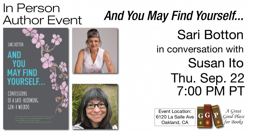 On Thursday, 9/22 at 7pm, I’ll be in conversation with author and Writer’s Grotto member Susan Ito at A Great Good Place For Books in Oakland.