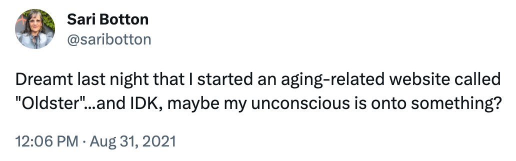 I’ve got big plans for Oldster in the year ahead. On my birthday in early October, I’ll add (and answer!) four new questions to The Oldster Magazine Questionnaire. I’m also scheming a book, a podcast, live events, and maybe (BIG MAYBE) a publishing arm. I hope you’ll stick around for what’s next.