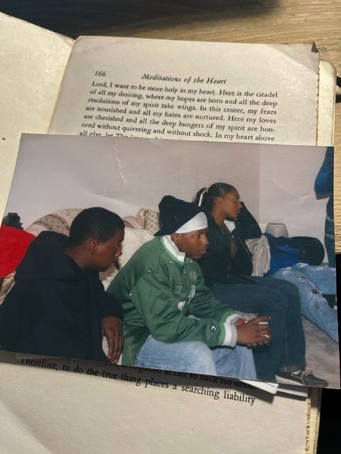 I often think about me as a young 16-year-old football player-musician-all-American-video gamer, trying to be cool and liked by my peers, and trying to make use of the cards that I have in my hand. There is a picture that I keep in my journal. It’s me as a teenager. I have on a green fleece, baggy blue jeans, with a white durag covered halfway by a black skull cap. I am sitting between my cousin, Darius, and a friend of another cousin. In my hand there is a deck of cards. I’m about to smack some heads in taunt—or at least that’s what I believe, though I ain’t telling nobody I don’t know how to play. So this image reminds me of that time. I go back there often. A young man. A deck of cards. Lying. Having fun. Faking it until I actually made it. I could not have imagined what cards I would be dealt in life, but eventually I would learn how to play my hand. You just might lose. But you just might win.