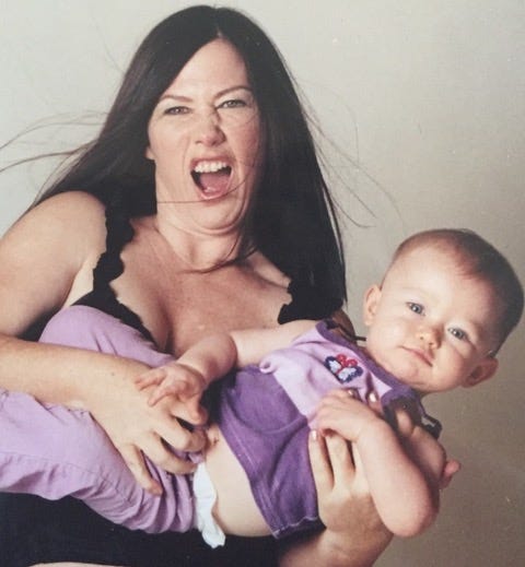 I was super peak in my early 40s. I had over a decade of sobriety, which is solid time. I got very proactive with my appearance and hired a maniac Russian for a physical trainer who had me doing handstands and gymnastics. I traded in my default rock and roll, punky spiky hair for long hair, and it looked way more fem than I had ever been. I had no awareness or concerns about my looks as a younger woman, I was only concerned with just rocking like mad, but at 40, I consciously wanted to be “hot.” It was nice while it lasted! At 43, I got married and pregnant and was just amazed by what a woman’s body could do. At 44 I was a brand new mom and went immediately into menopause. I had so many changes in my life in my 40s, it was crazy.