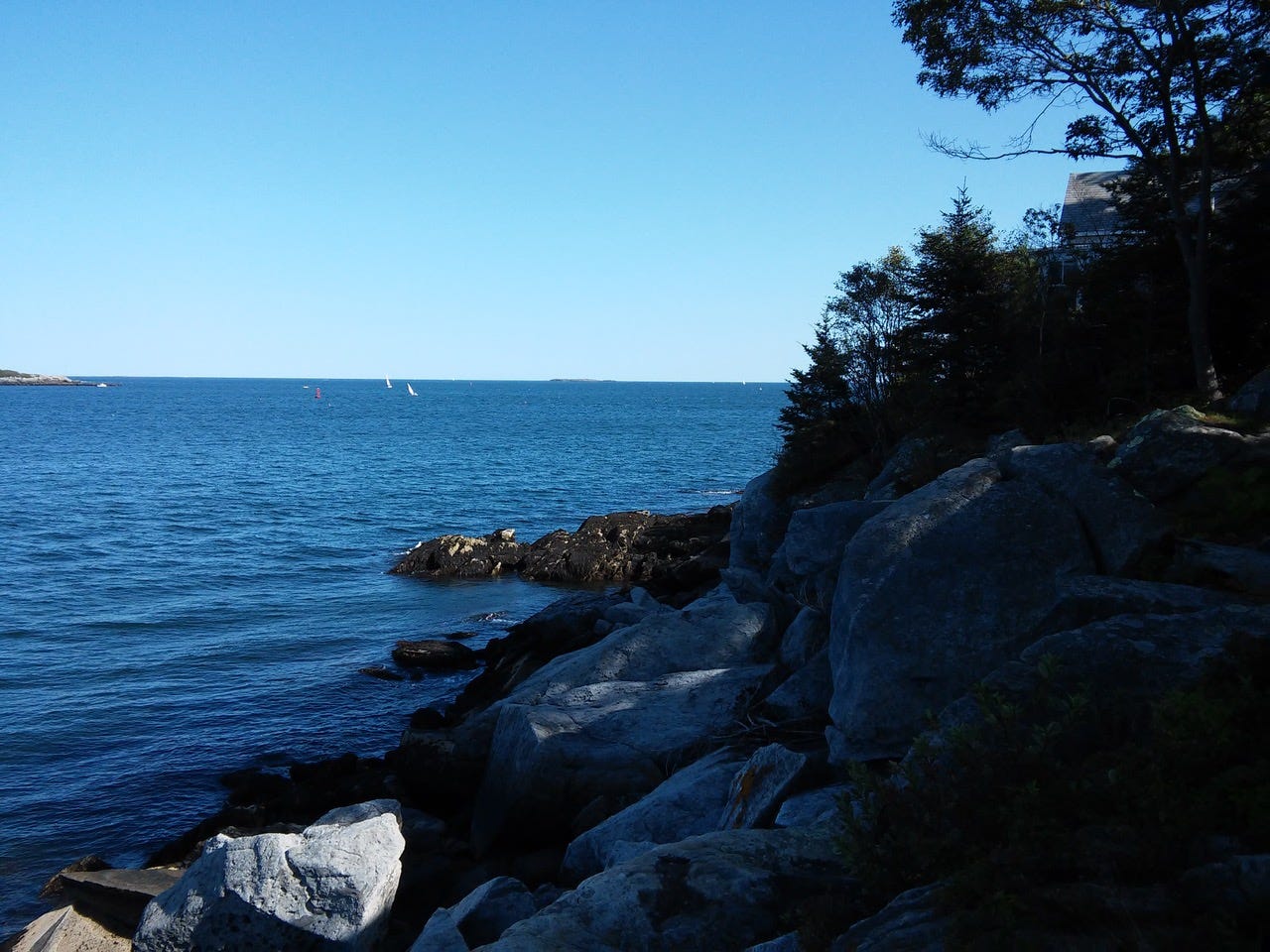 Here, we will lay hurl sprinkle spread my stepfather David's ashes into the Atlantic Ocean in Casco Bay but not in front of what was our cottage that was sold for a large amount of money thanks to the priceless view and location on rocks that is not allowed anymore in these sensible, tedious, overpriced times, because David and his brother and sister could no longer afford the taxes and the necessary repairs. So, we will go in front of a cousin's place, next door.