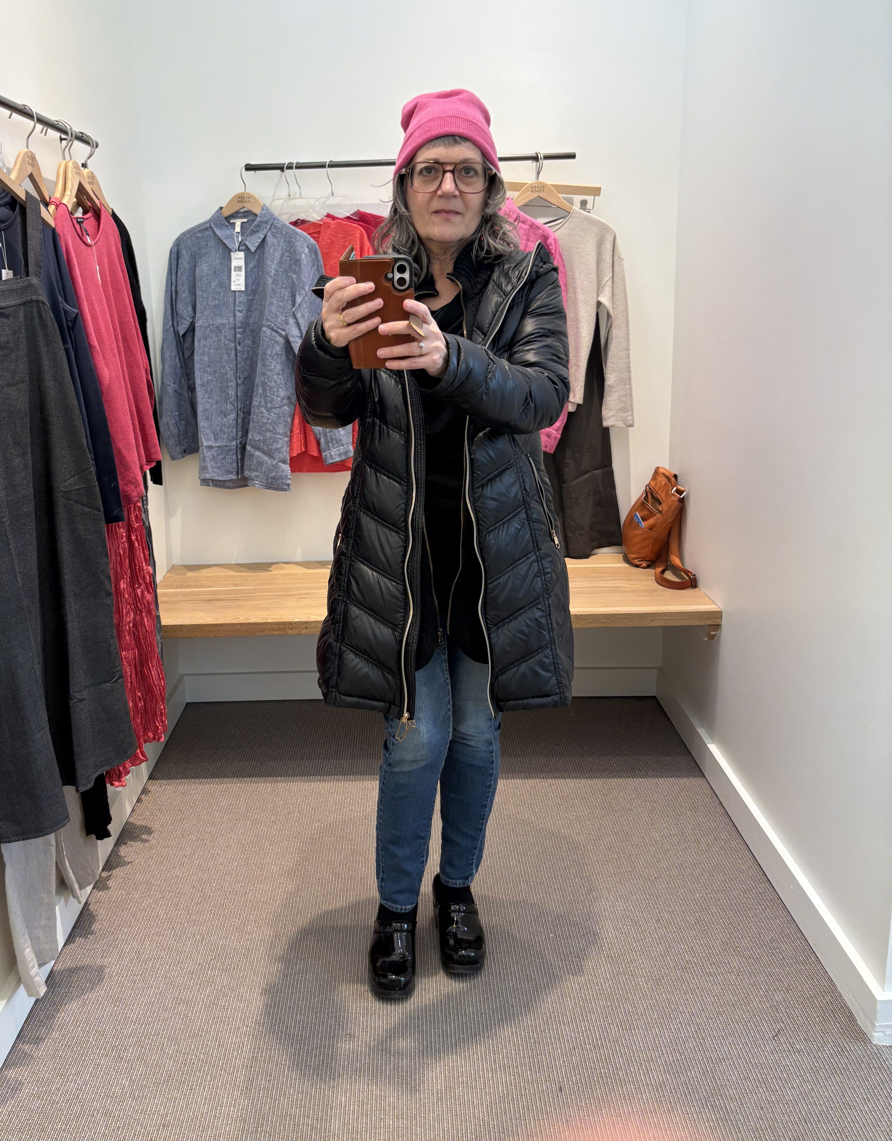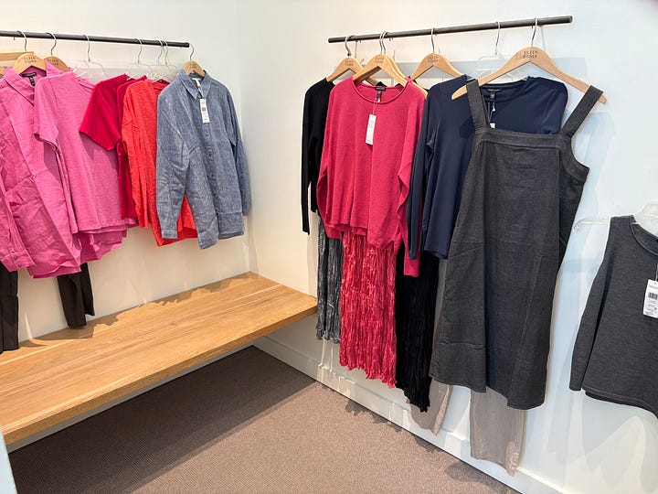 I went in with the question, “Am I Eileen Fisher Years Old?” I even asked that of one of the sales associates, Tina, 60, and she set me straight—her 37-year-old daughter wears Eileen Fisher, too.