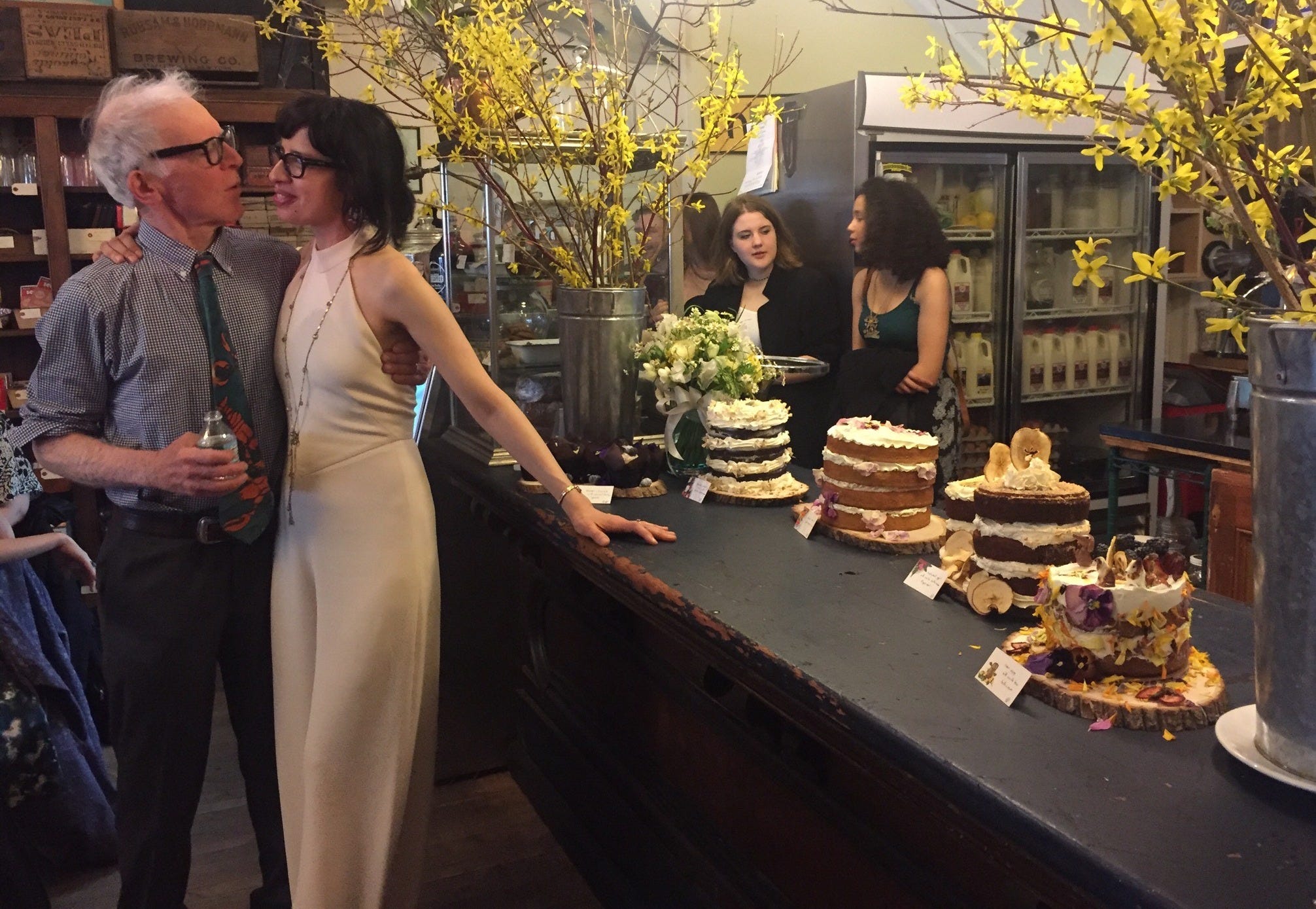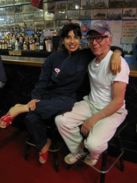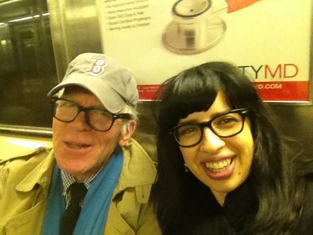I can still see him standing outside of The Strand bookstore on Broadway one Monday, next to his bicycle as I turned to head for the subway, his bright white hair floating above his head like an ectoplasm, his eyes on me behind his black, Ray-Ban “Wayferers,” his signature look. He’s wearing a grey linen suit he didn’t wear much afterwards, and the old, cracked brown leather wingtip shoes that he finally threw away thirteen years later when we moved upstate to Kingston. I’m smiling at him and he’s saying, in his gently gravelly voice, “Get to work!” Making me feel so truly happy that I laugh, and I can feel that laugh in my throat now, as I remember it. I had a lover and a mentor and a friend in him. I couldn’t ask for more.
