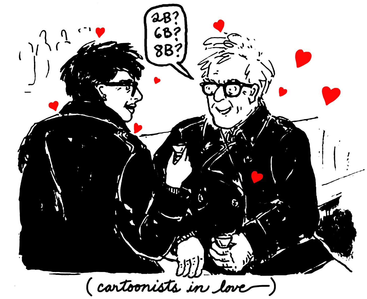 Yes, I was blissfully unaware that I was out of my league. I was 37, freshly unemployed and living with my parents: I suppose I should have been ashamed. He was 56, and unbeknownst to me, one of the most well-known and beloved staff cartoonists at The New Yorker. Me, I was merely impressed that he could pay his rent by drawing cartoons.